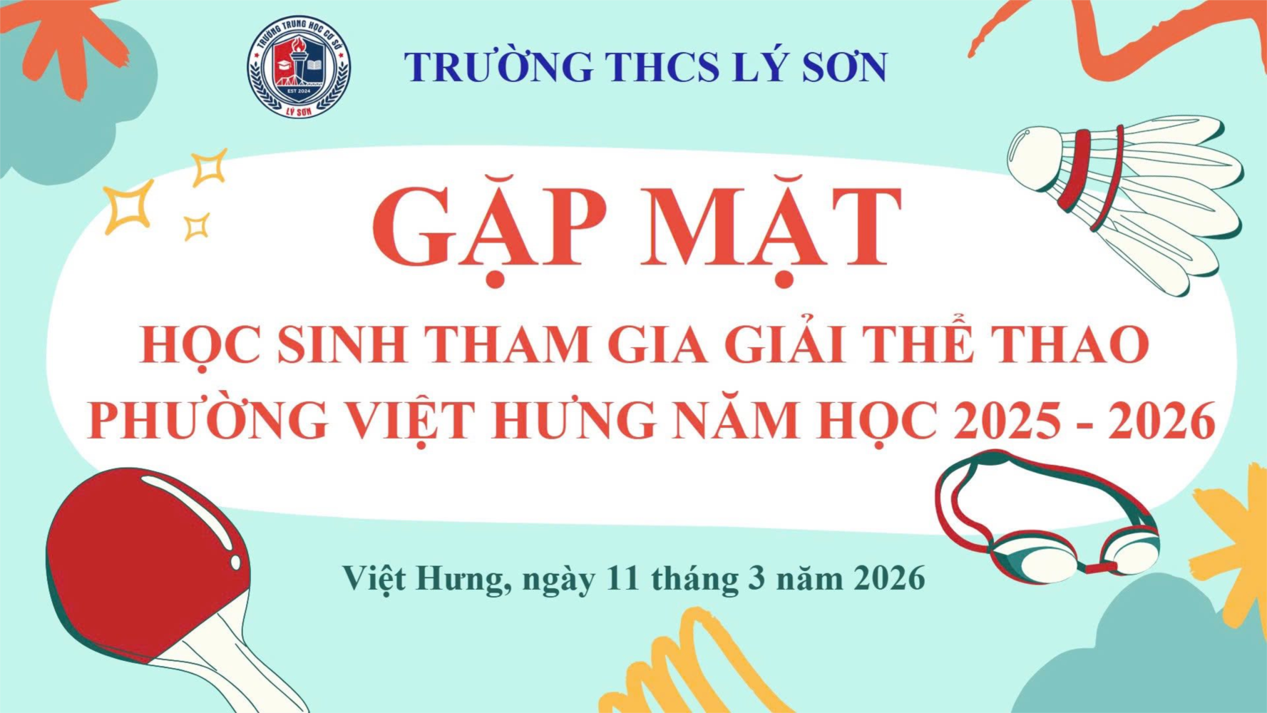 Sáng ngày 11/3, BGH trường THCS Lý Sơn tổ chức buổi gặp mặt các học sinh tham gia thi đấu Giải Thể thao phường Việt Hưng năm học 2025 – 2026. Buổi gặp mặt có sự tham dự của Ban giám hiệu nhà trường, giáo viên chủ nhiệm các lớp cùng các em học sinh đại diện nhà trường tham gia thi đấu.